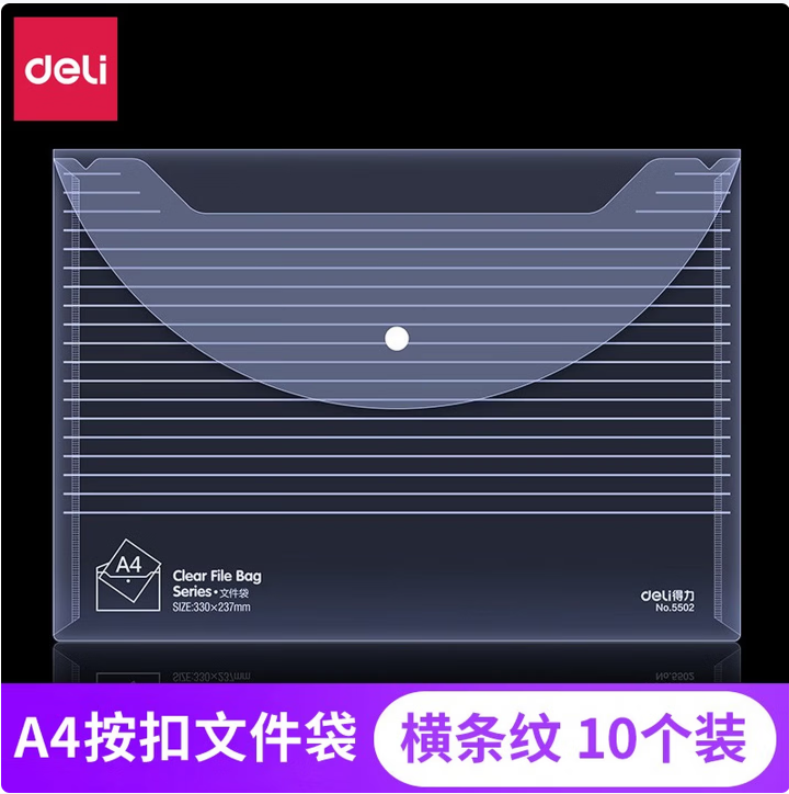 得力(deli) 文件袋 牛皮纸 A4纽扣袋按扣文件袋 资料袋 文件套 5502横条纹按扣袋10个