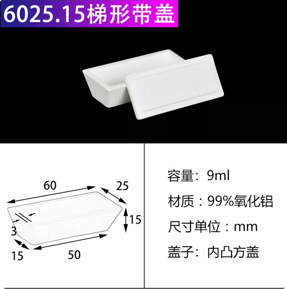 刚玉坩埚99%氧化铝方舟带盖子方形船舟长方灰皿管式炉瓷舟60*25*15mm带内凸盖9ml梯形