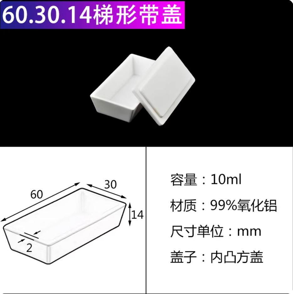 刚玉坩埚99%氧化铝方舟带盖子方形船舟长方灰皿管式炉瓷舟60*30*14mm带内凸盖10ml梯形