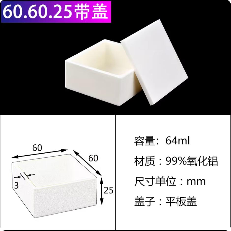 刚玉坩埚99%氧化铝方舟带盖子方形船舟长方灰皿管式炉瓷舟60*60*25mm带平板盖64ml
