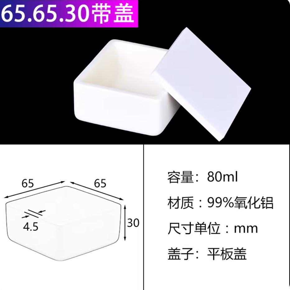 刚玉坩埚99%氧化铝方舟带盖子方形船舟长方灰皿管式炉瓷舟65*65*30mm带平板盖80ml