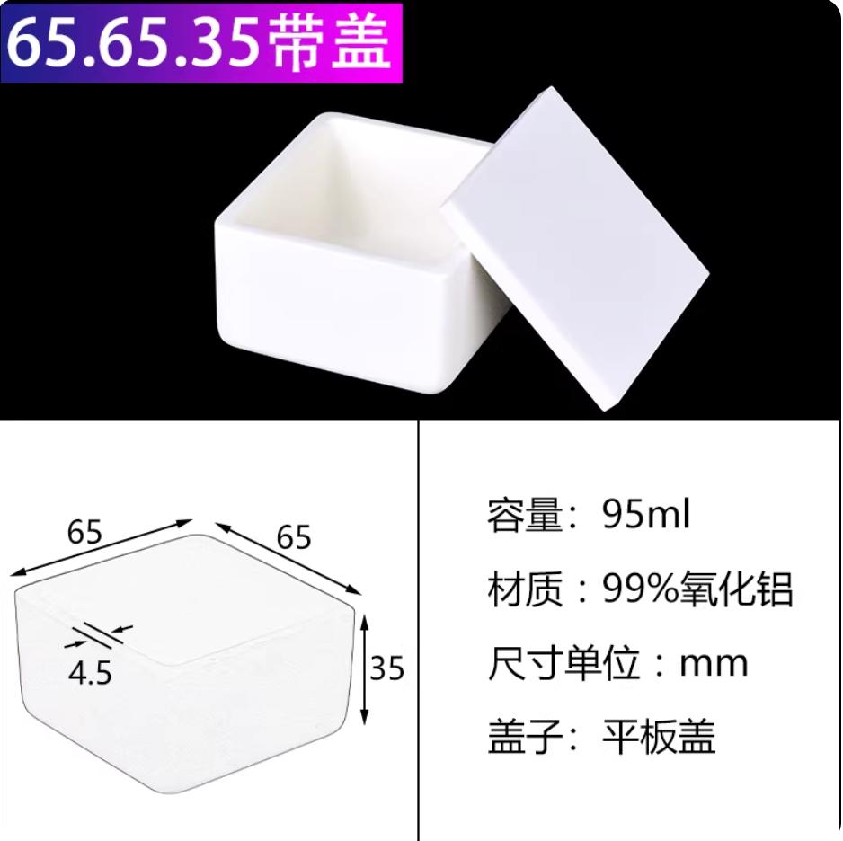 刚玉坩埚99%氧化铝方舟带盖子方形船舟长方灰皿管式炉瓷舟65*65*35mm带平板盖95ml