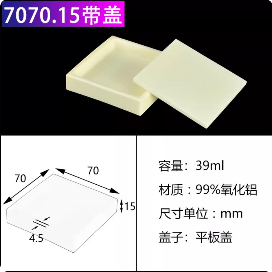 刚玉坩埚99%氧化铝方舟带盖子方形船舟长方灰皿管式炉瓷舟70*70*15mm带平板盖39ml