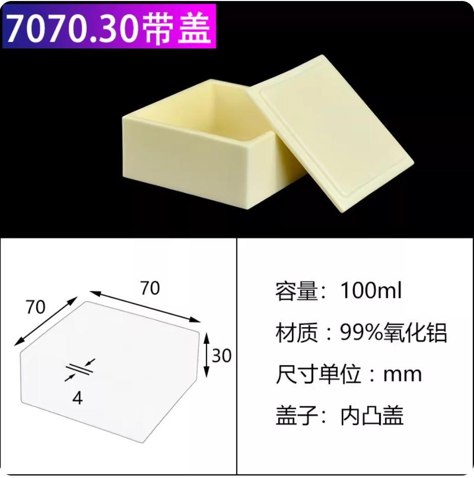 刚玉坩埚99%氧化铝方舟带盖子方形船舟长方灰皿管式炉瓷舟70*70*30mm带内凸盖100ml