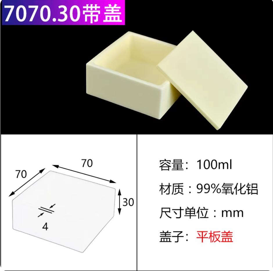刚玉坩埚99%氧化铝方舟带盖子方形船舟长方灰皿管式炉瓷舟70*70*30mm带平板盖100ml