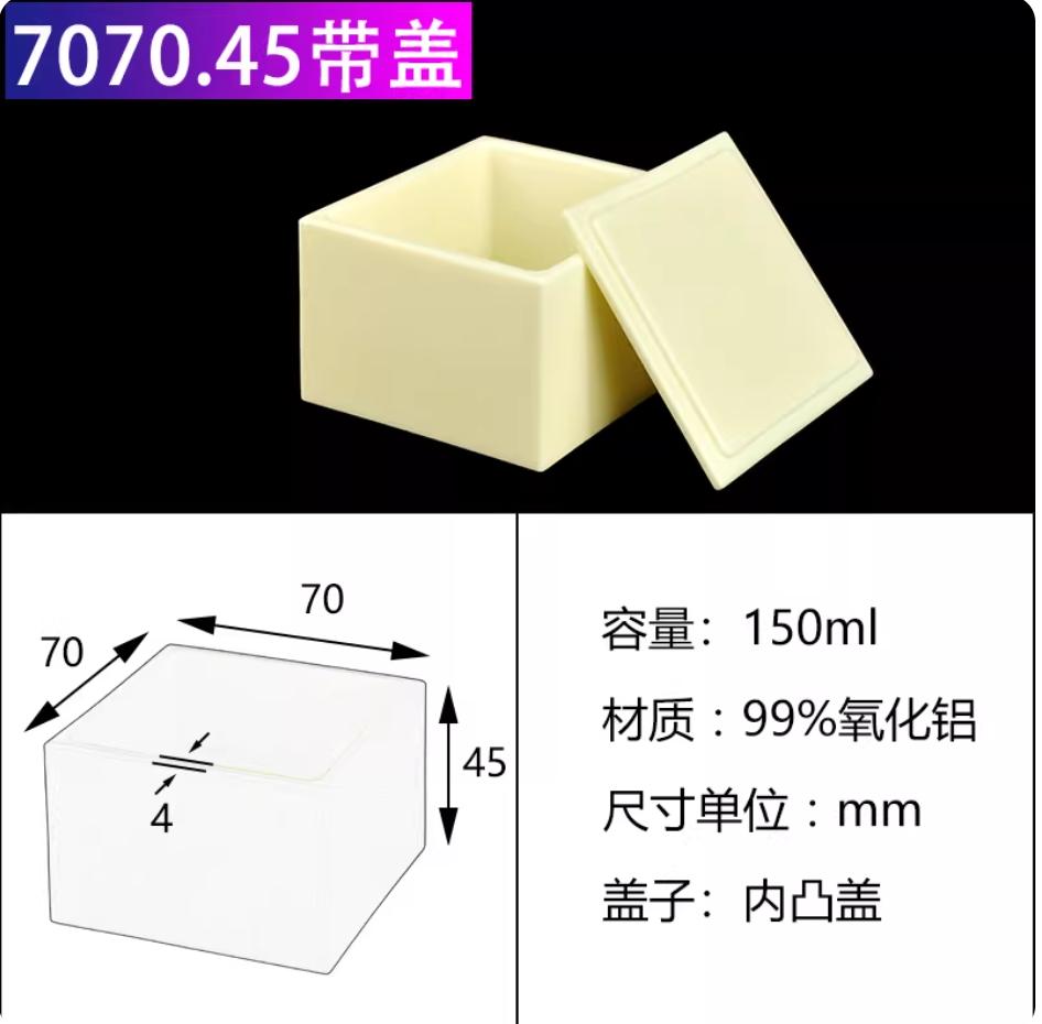 刚玉坩埚99%氧化铝方舟带盖子方形船舟长方灰皿管式炉瓷舟70*70*45mm带内凸盖150ml