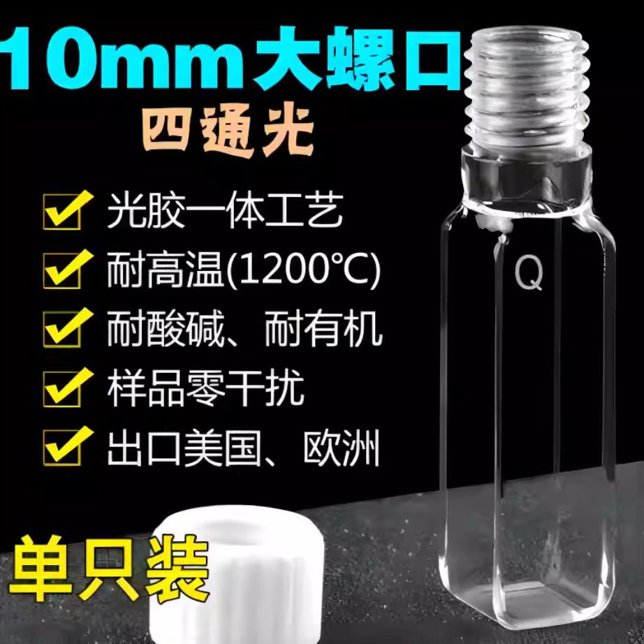 10mm石英螺口比色皿螺纹口荧光四面透光密闭密封可注射大螺口四通光比色皿