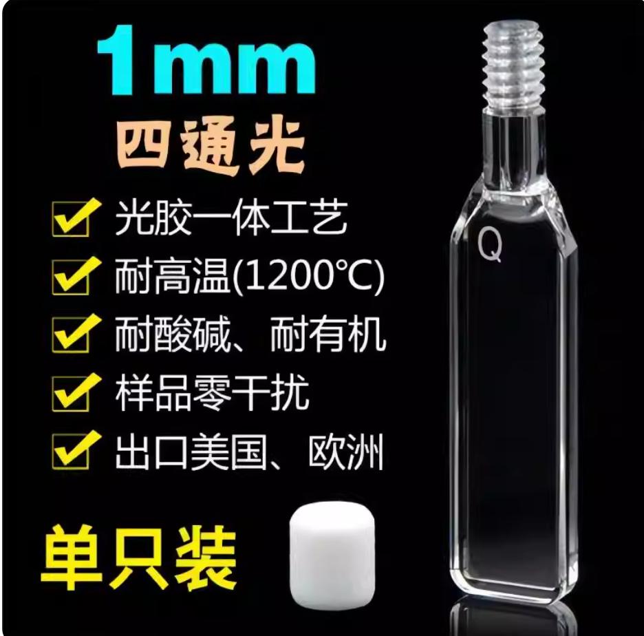 1mm石英螺口比色皿螺纹口荧光四面透光密闭密封可注射螺口四通光比色皿