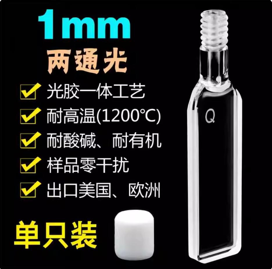 1mm石英螺口比色皿螺纹口荧光两面透光密闭密封可注射螺口两通光比色皿