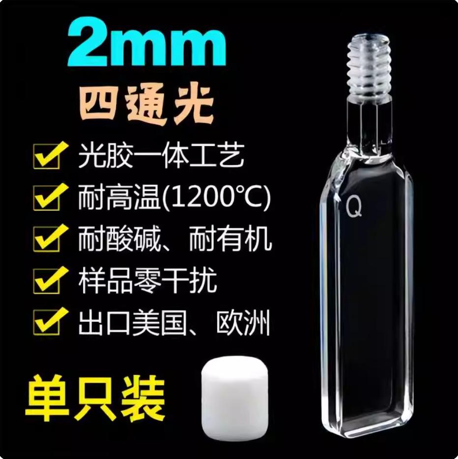 2mm石英螺口比色皿螺纹口荧光四面透光密闭密封可注射螺口四通光比色皿