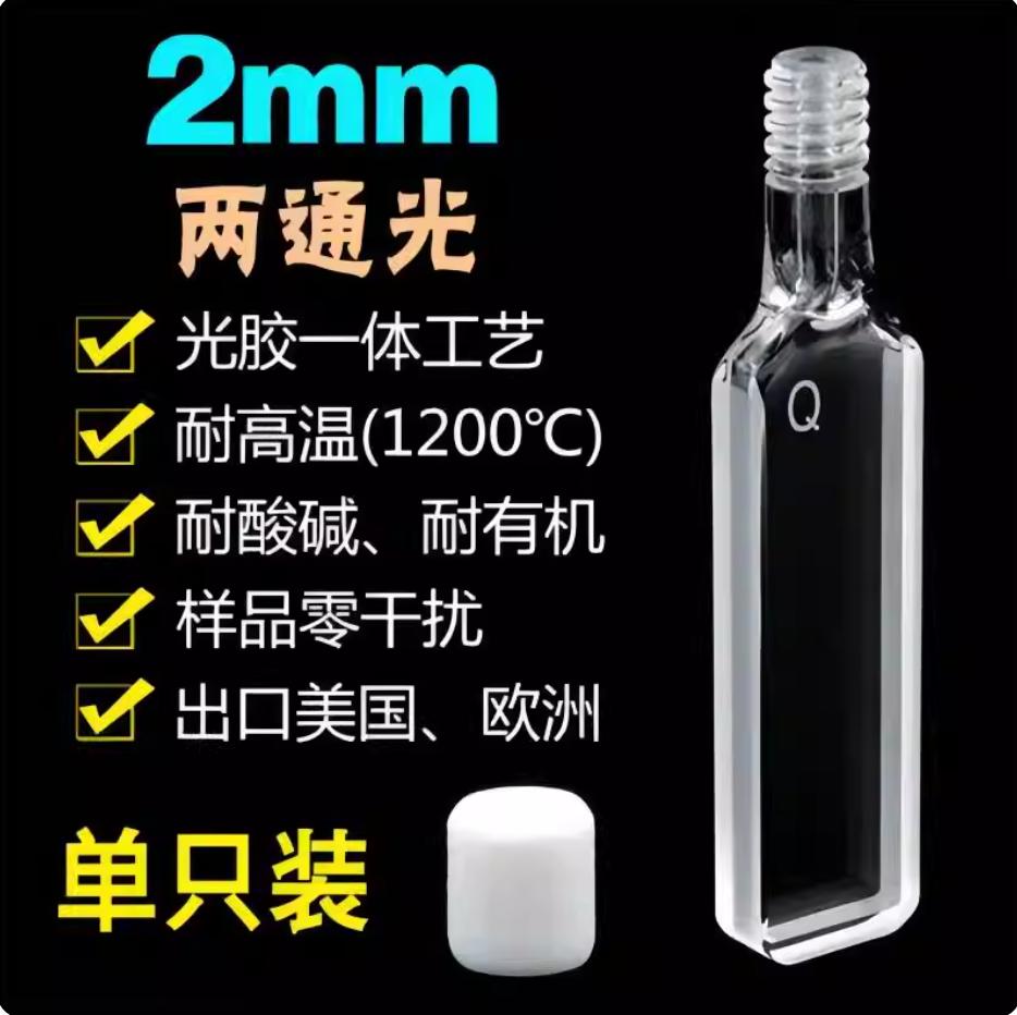2mm石英螺口比色皿螺纹口荧光两面透光密闭密封可注射螺口两通光比色皿