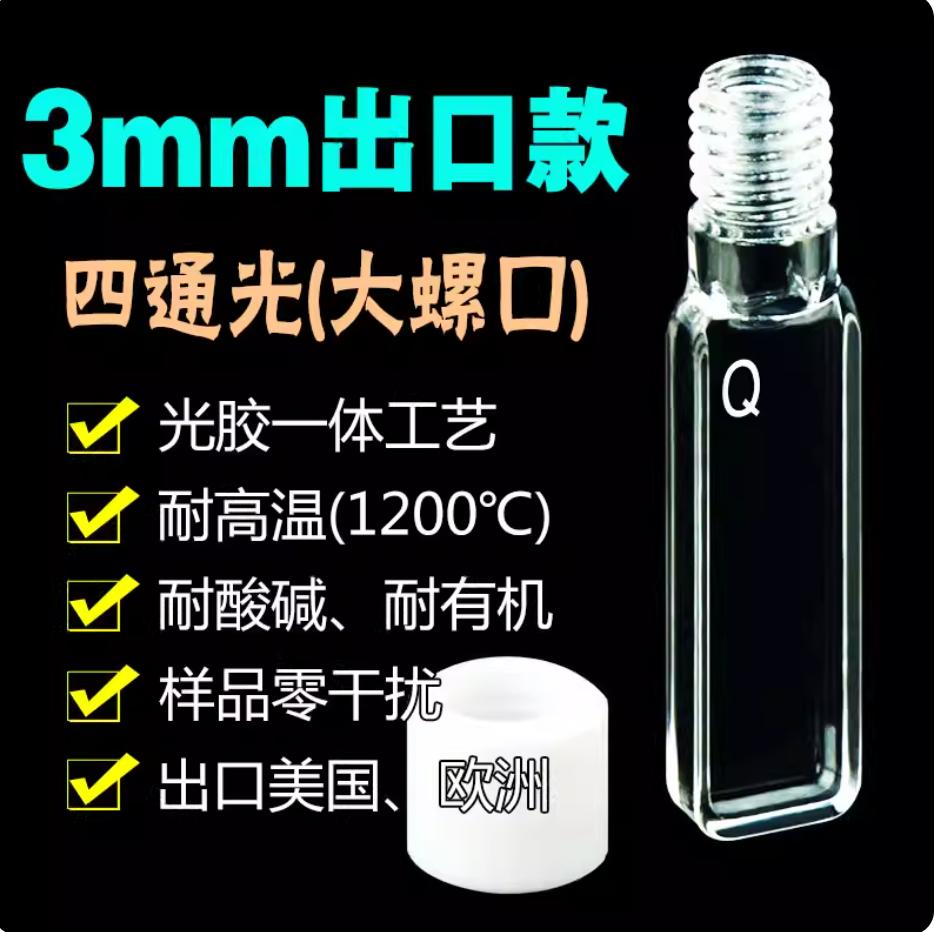 3mm石英螺口比色皿螺纹口荧光四面透光密闭密封可注射大螺口四通光比色皿