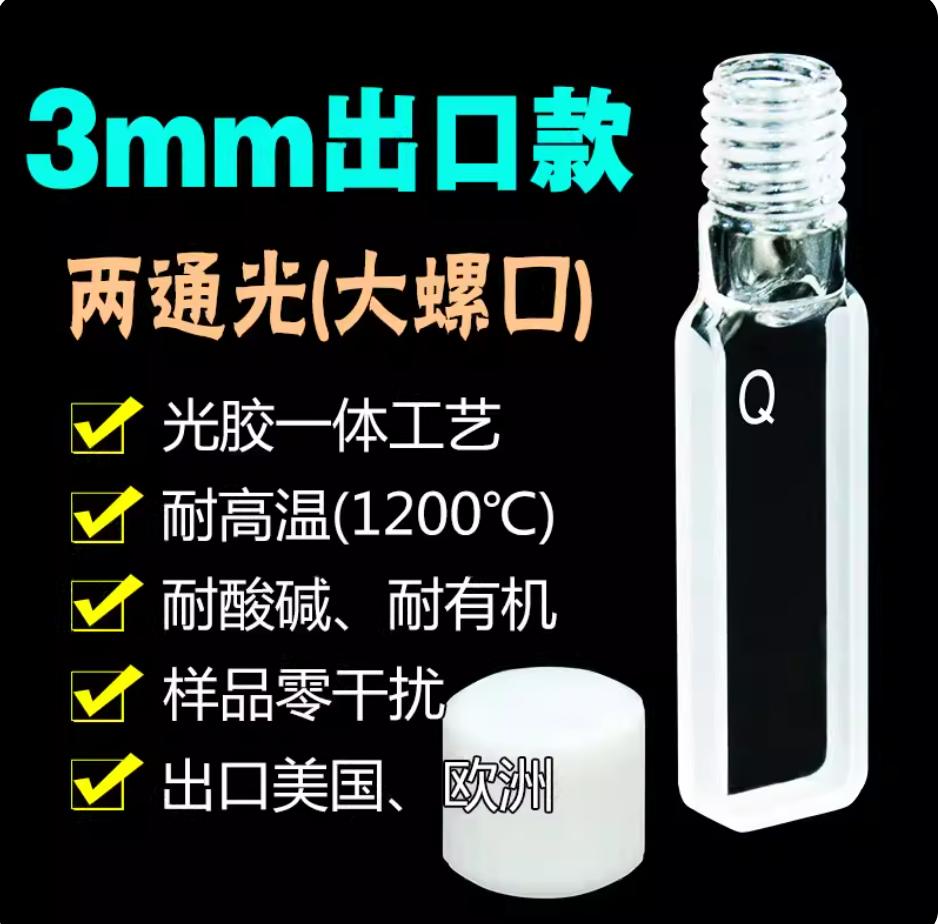 3mm石英螺口比色皿螺纹口荧光两面透光密闭密封可注射大螺口两通光比色皿