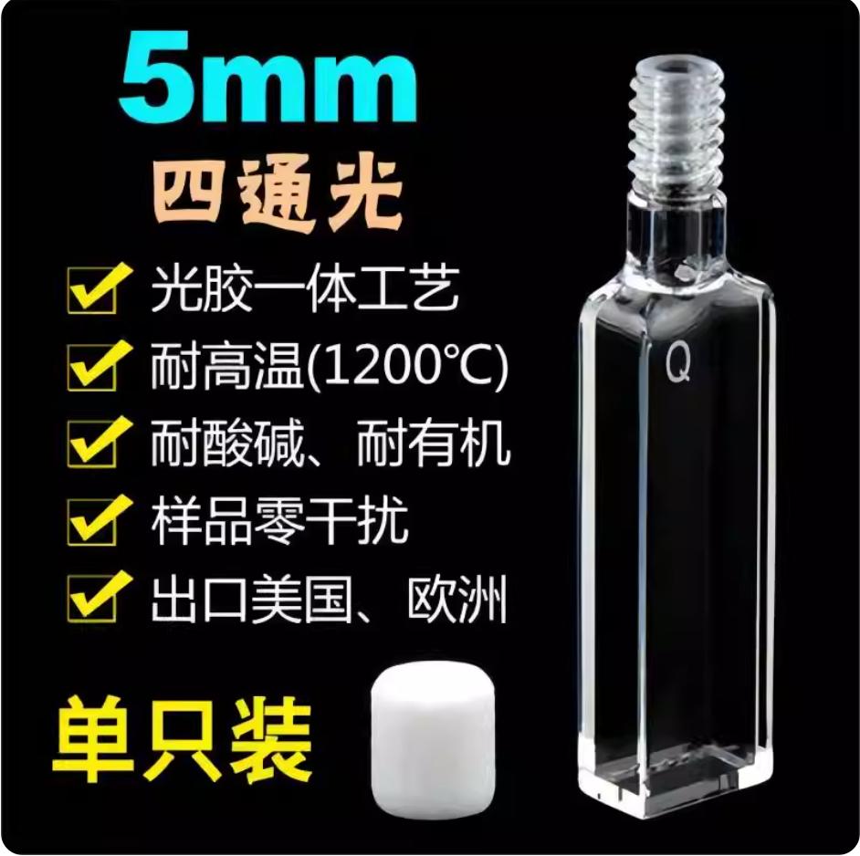 5mm石英螺口比色皿螺纹口荧光四面透光密闭密封可注射螺口四通光比色皿