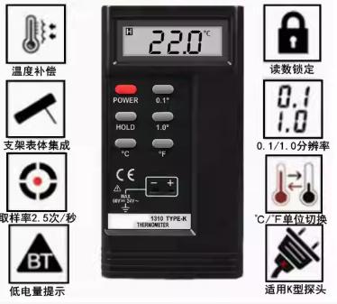 测温仪表,TSE1310测温仪,可立可手持测温仪,可配K型探头,标配9V电池,1个每包装。