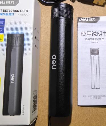 紫光检测灯,得力强光紫光手电筒,最大功率3W,1200mah长续航,最大射程50米以下,实验室用于真菌检测、玉石鉴定等,可充电,带充电线,不带充电头,Type-C充电口,一个每盒装。