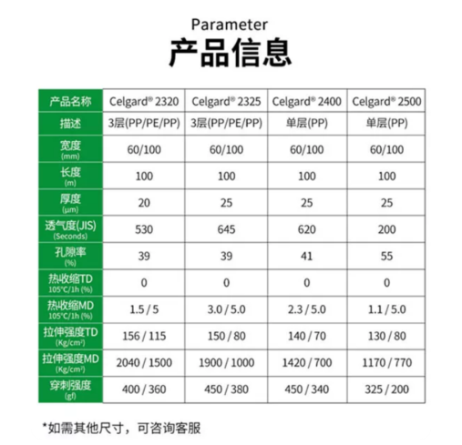 Celgard进口锂电池隔膜PP/PE隔膜 2320/2325/2500/2400 电池隔膜