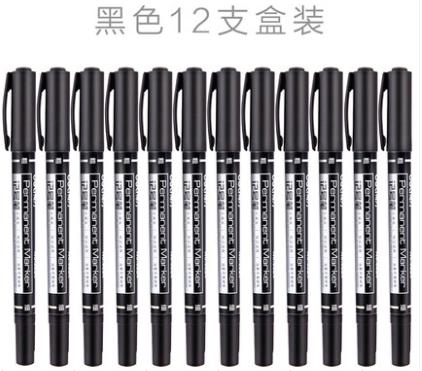 商品简介 记号笔,小双头油性笔,得力6824小双头马克笔,黑色,12只每盒装。