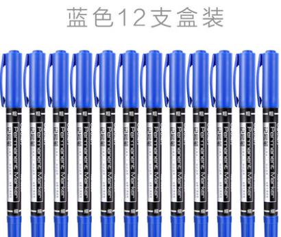 商品简介 记号笔,小双头油性笔,得力6824小双头马克笔,蓝色,12只每盒装。