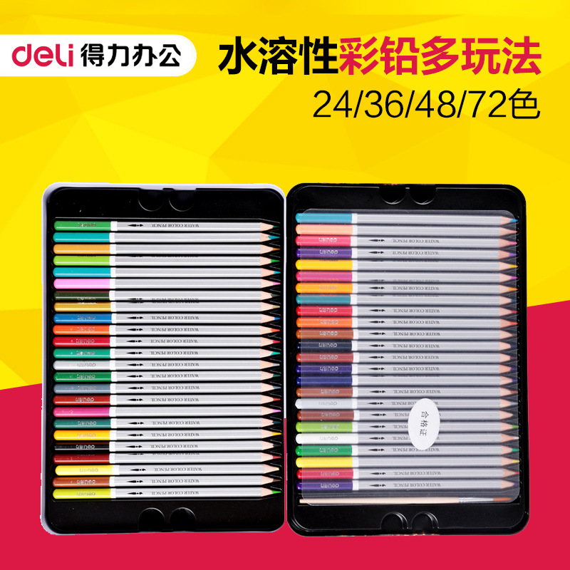 得力水溶性彩铅24色 36色 48色 72色 彩色铅笔 涂色填色彩笔绘画