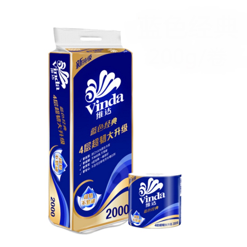 维达(Vinda) 蓝色经典3层卷纸 卫生卷纸 卫生纸 卷筒纸巾 厕纸 擦手纸 200g/卷 10卷/提