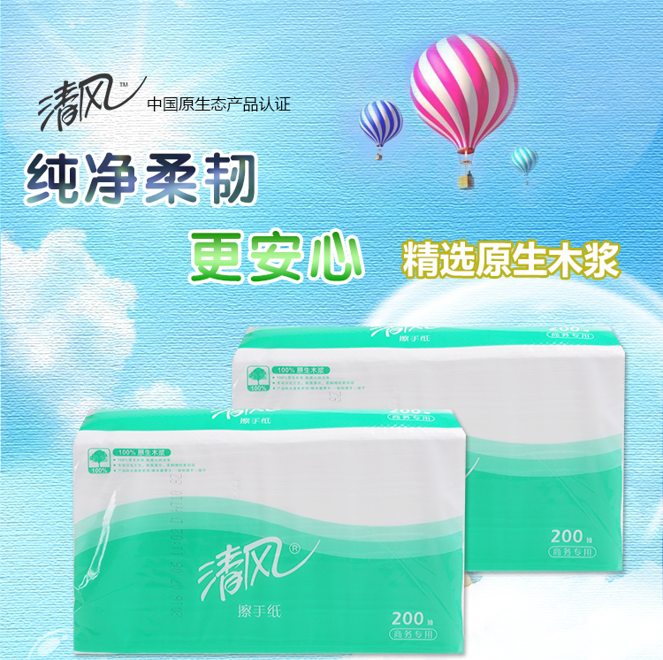 清风(APP) B913A 三折擦手纸 200抽/包 20包/箱 软装抽纸 卫生纸 餐巾纸 纸巾