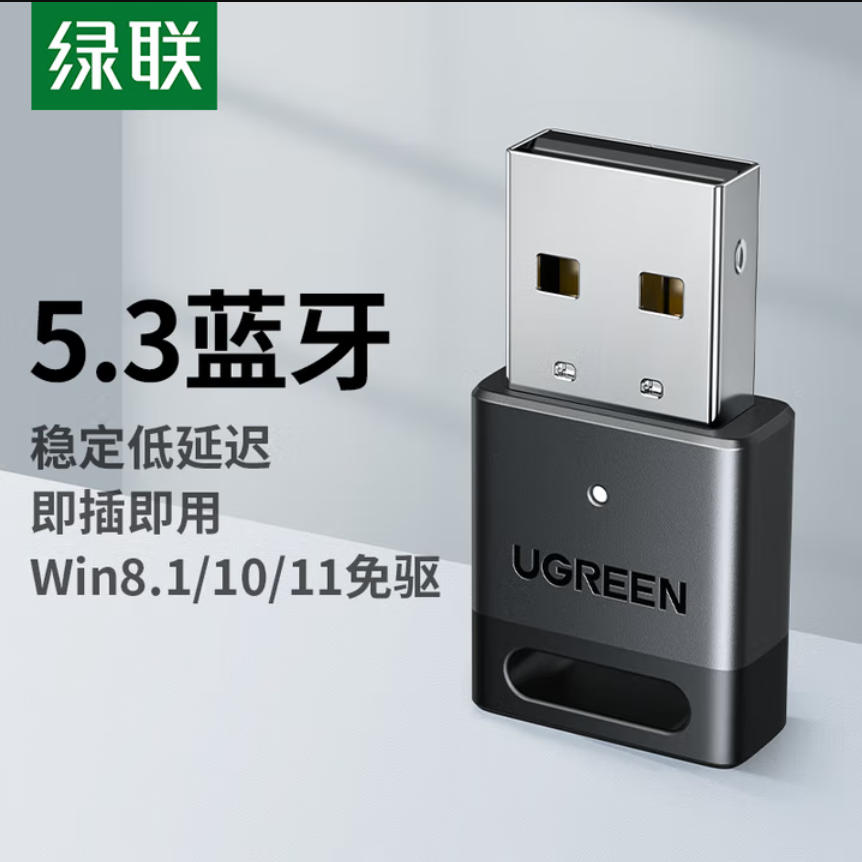 君航科技 绿联USB蓝牙适配器5.3接收器免驱 适用键盘鼠标耳机音响手柄 PC电脑台式机外置蓝牙模块无线蓝牙发射器