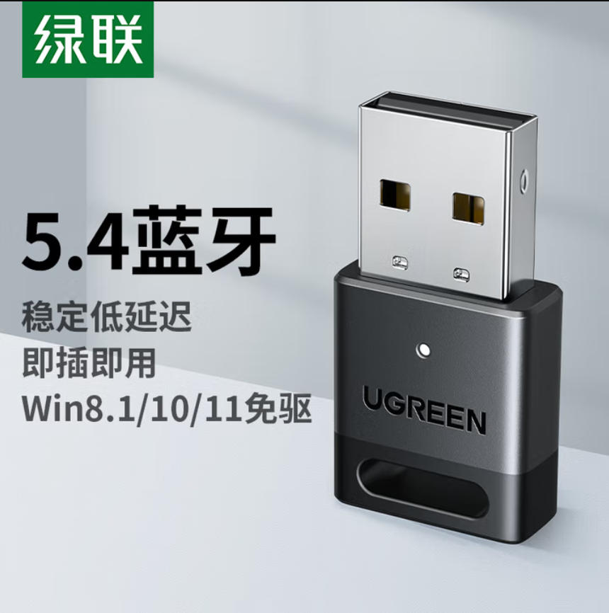君航科技 绿联USB蓝牙适配器5.4发射器 蓝牙音频接收器 适用台式机电脑蓝牙模块连接键盘鼠标蓝牙耳机音响即插即用