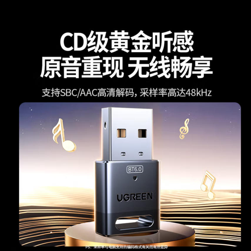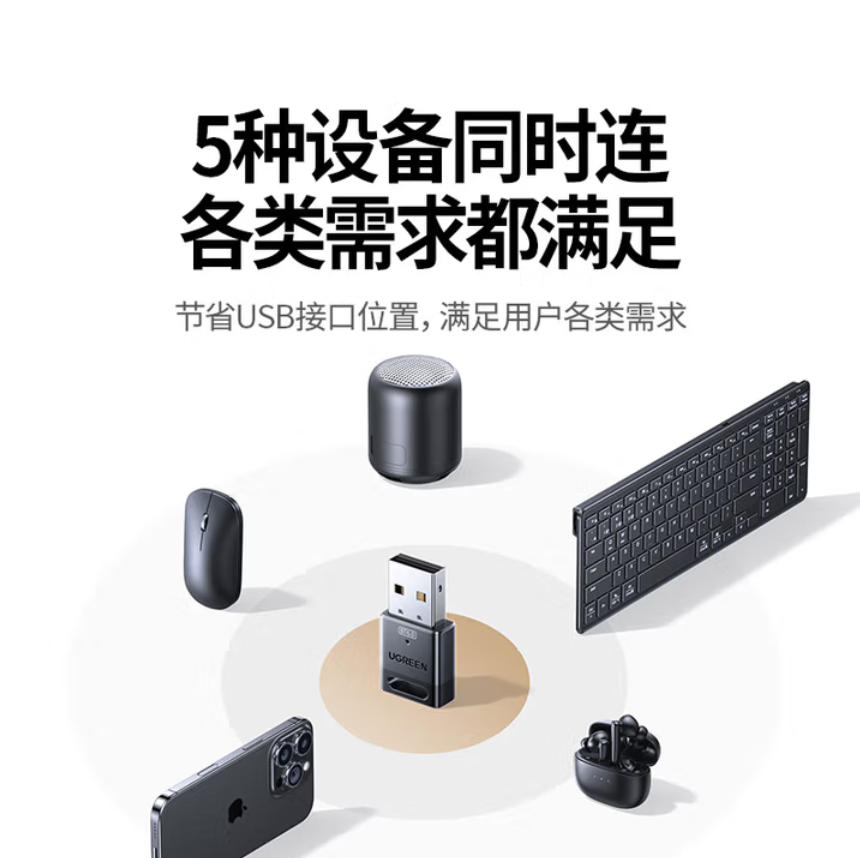 君航科技 绿联USB蓝牙适配器6.0接收器免驱 适用键盘鼠标耳机音响手柄 PC电脑台式机外置蓝牙模块无线蓝牙发射器