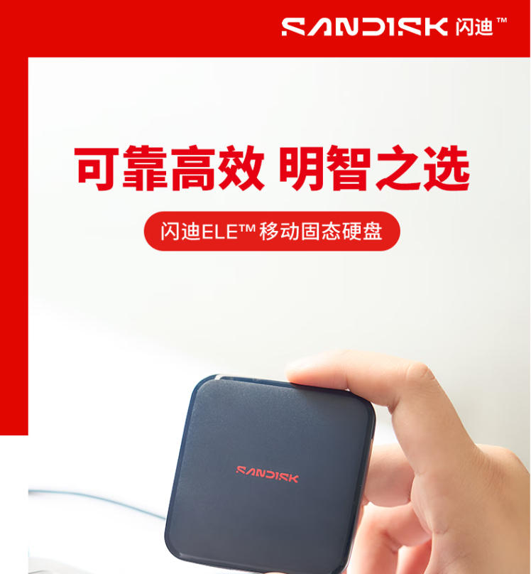 君航科技 闪迪(SanDisk)ELE™ 1TB 2TB 移动固态硬盘(PSSD)新元素 type-c接口 小巧便携手机直连笔记本两用外接 办公存储西数