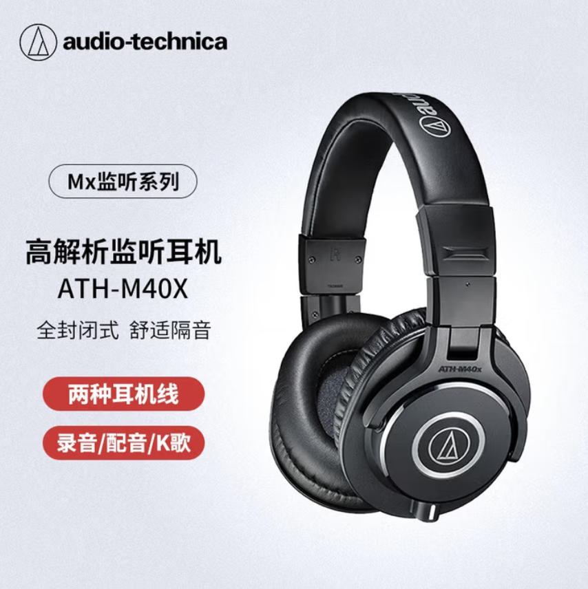 君航科技 铁三角(Audio-technica)ATH-M40x 专业监听头戴式耳机 90度旋转式耳罩单耳监听