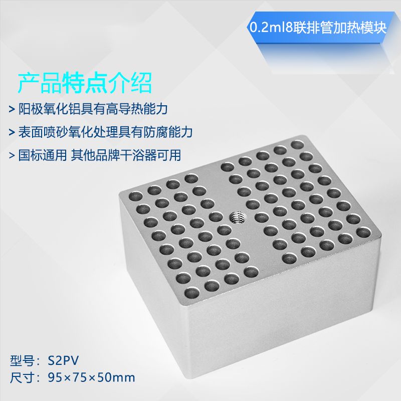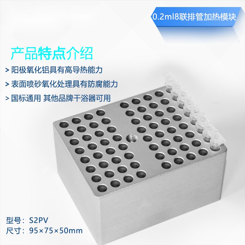 RHT-S2PV 0.2ml 8联排管 V型孔 72孔 金属浴加热模块
