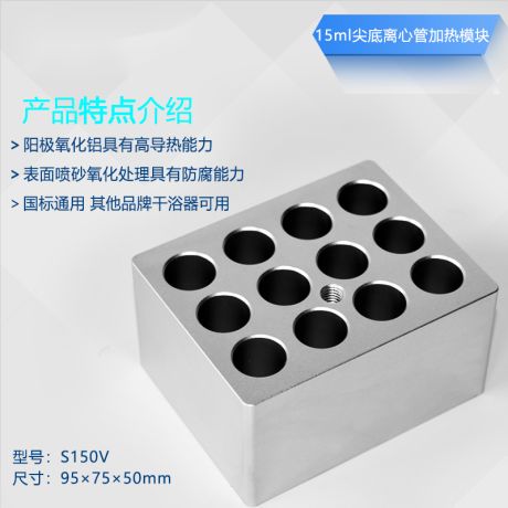 RHT-S150V 15ml尖底离心管 12孔 金属浴干浴器加热模块