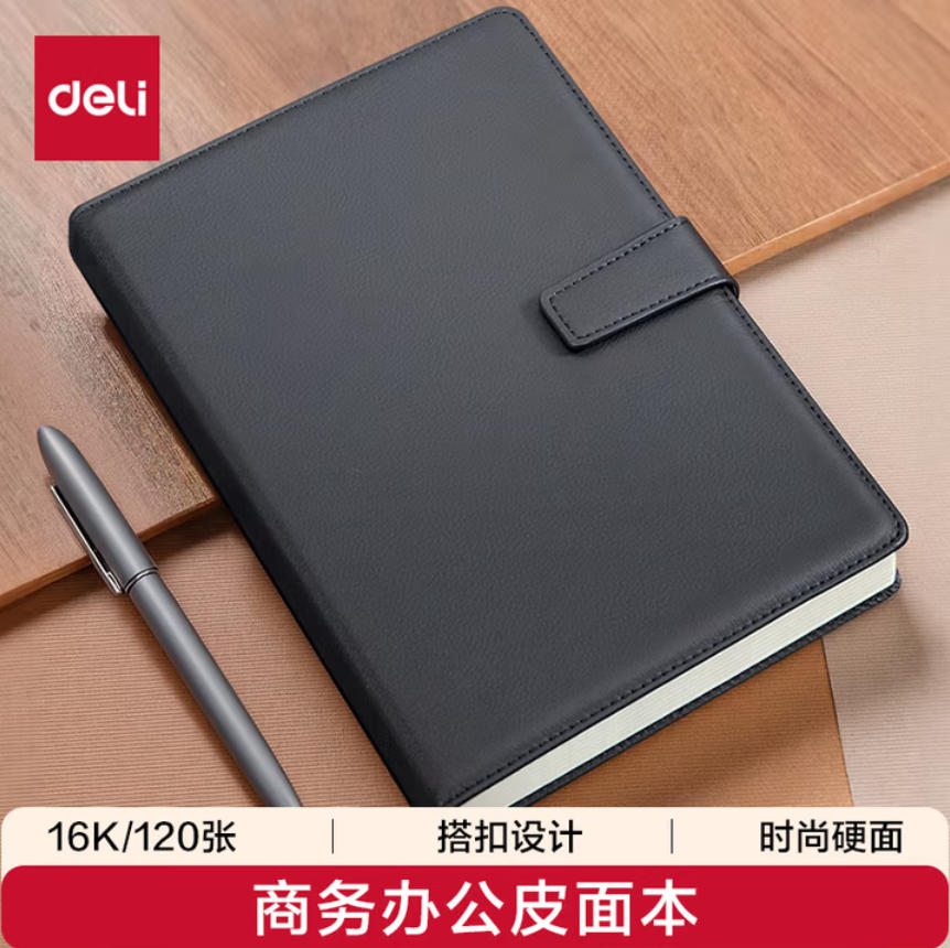 君航科技 得力(deli)16K120张商务磁扣皮面本 工作记事本日记本会议记录本笔记本子 黑色3302