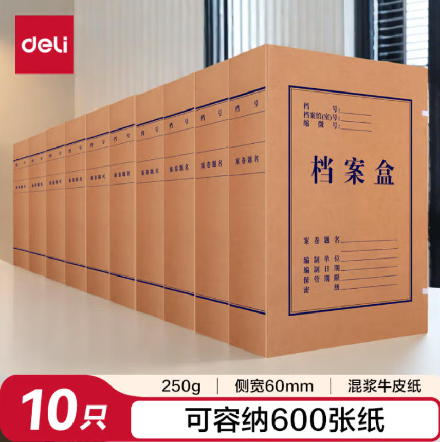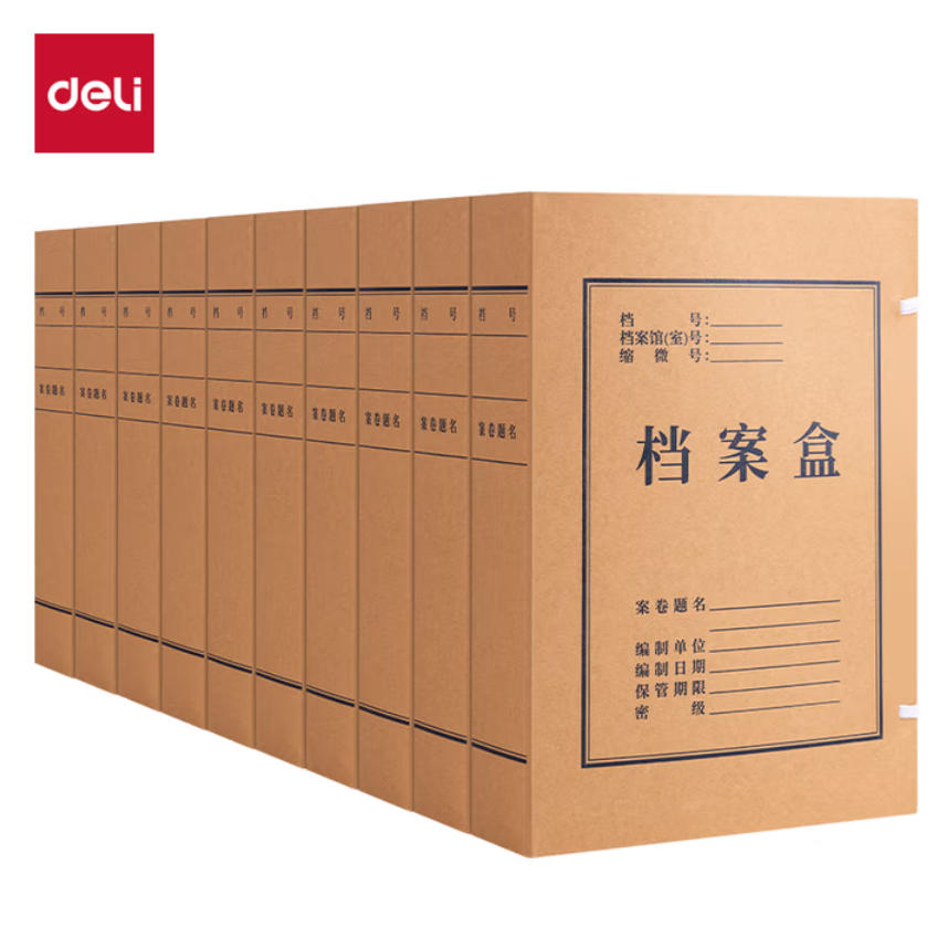 君航科技 得力(deli)10只60mm混浆250g牛皮纸文件盒档案盒加厚财会档案盒资料盒 考试收纳P05620