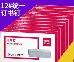 商品简介 订书钉,得力0012订书针统一12号订书钉24/6常规钉书针,1000枚一小盒,10小盒每包装。