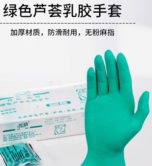无粉灭菌一次性绿色芦荟乳胶手套(箱)