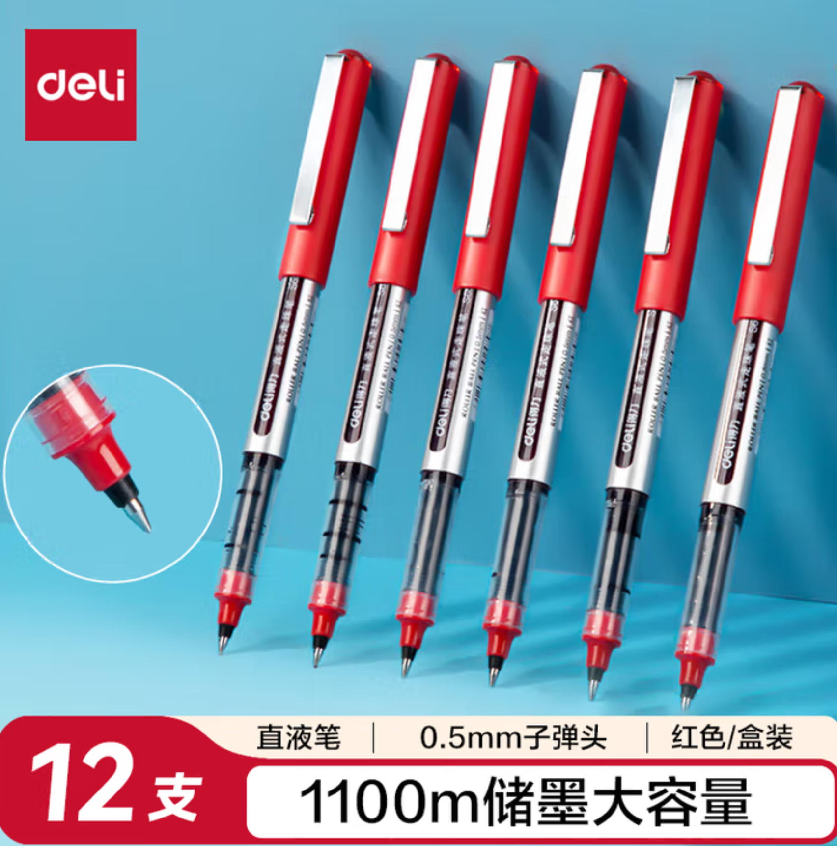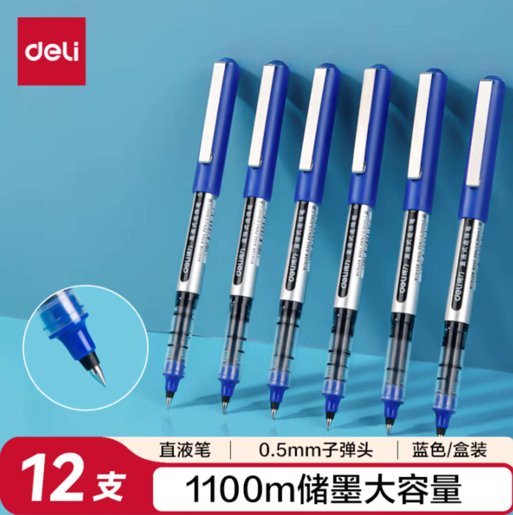 君航科技 得力(deli)直液笔中性笔 0.5mm子弹头签字笔学生考试笔走珠笔水笔 黑色 蓝色 红色 办公用品12支/盒S656