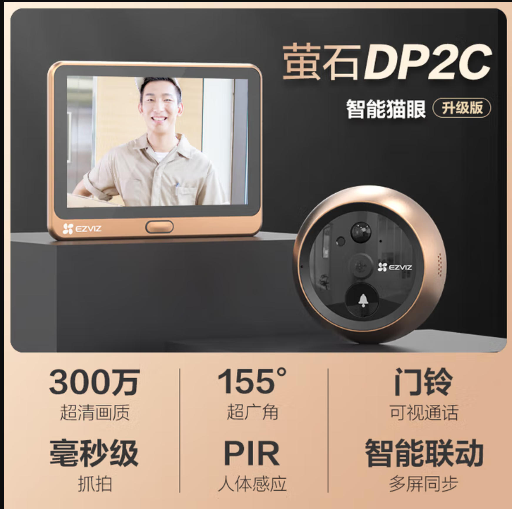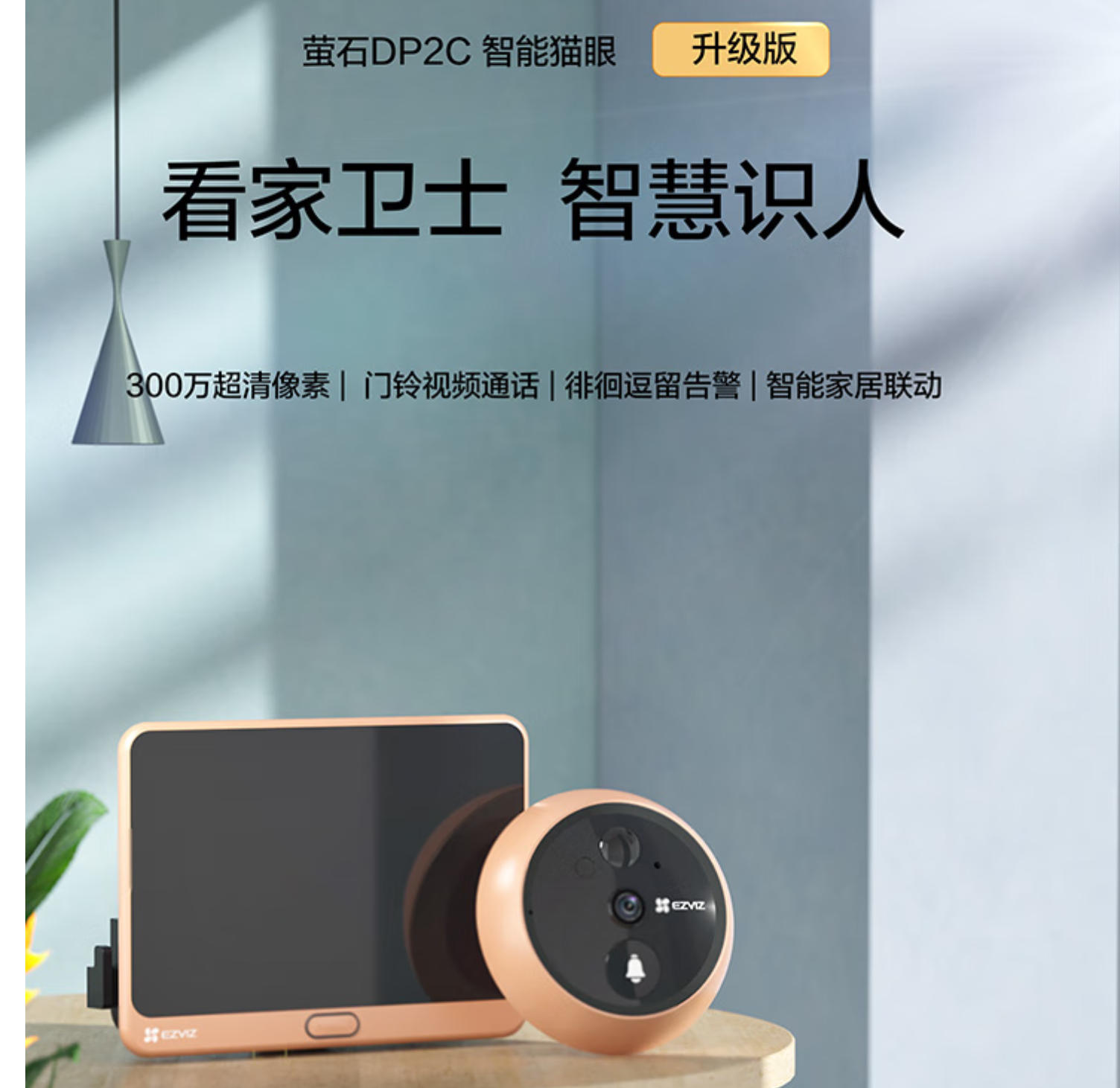 君航科技 萤石DP2C 3MP智能猫眼 摄像头 300万超清 海康威视旗下电子猫眼 可视门铃防盗门监控 远程可视通话