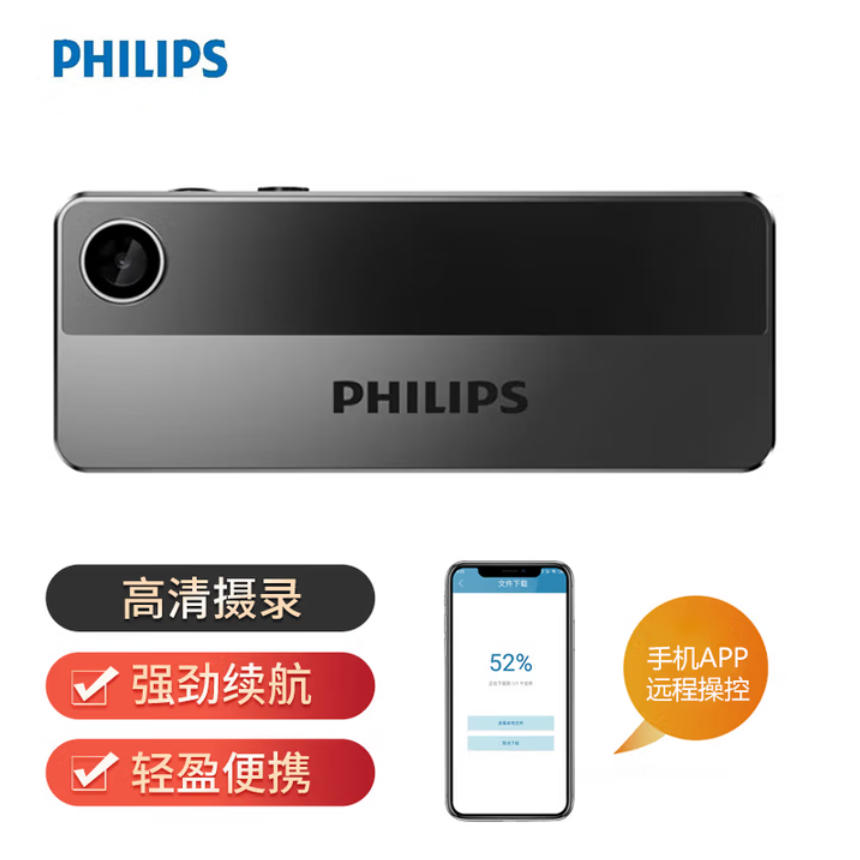 君航科技 飞利浦(PHILIPS)VTR8001 VTR-8002 胸牌式 执法记录仪 便携式 胸前随身执法仪 可WIFI连接 128G