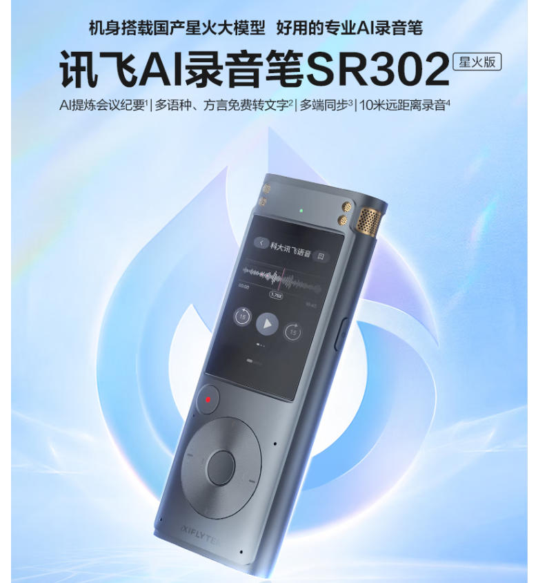 君航科技 科大讯飞AI录音笔SR302星火版 免费录音转文字 智能降噪录音器 随身便携专业录音设备录音机 同声传译