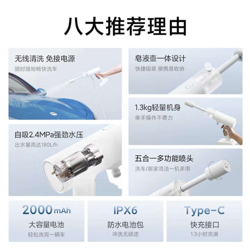 君航科技 米家 小米 米家 无线洗车 多功能家用锂电 高压 多模式 洗车 水枪 便携洗车机