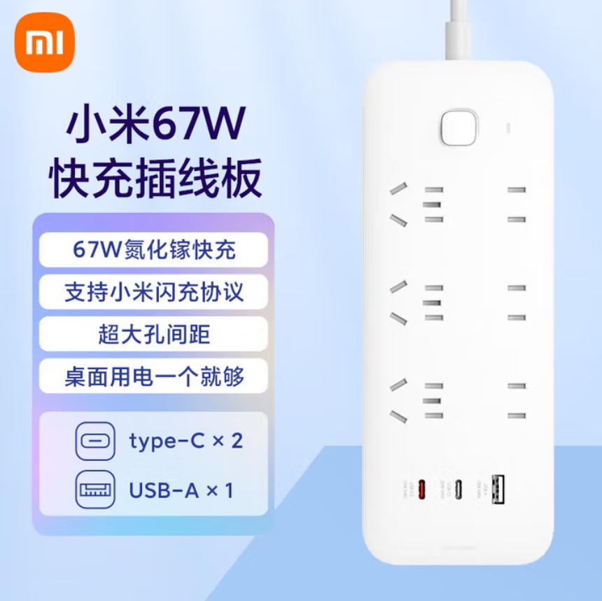 君航科技 小米(MI)小米67W氮化镓PD快充Type-C+USB插排/插线板/插座/接线板/拖线板/多功能便携桌面插排开关