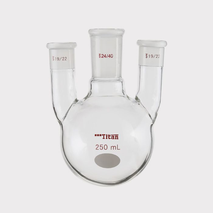 直三口球瓶,厚壁高强度,中间磨口:24/40,侧磨口:19/22,250ml 特优级