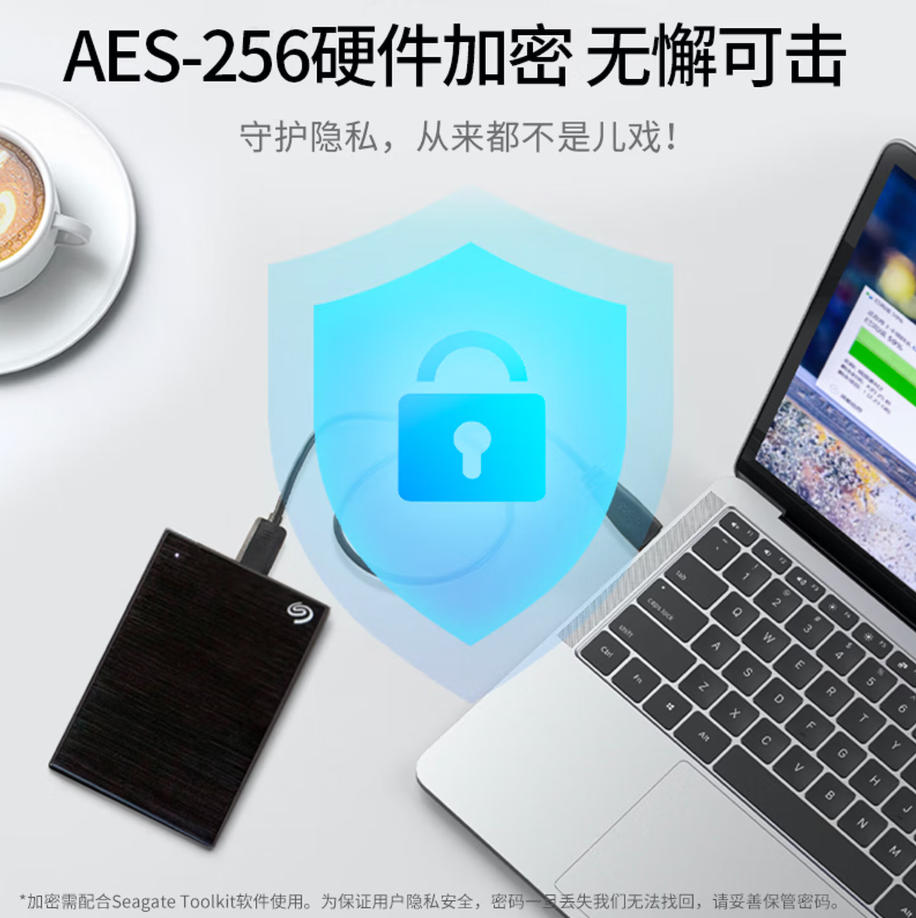 君航科技 希捷(SEAGATE)移动硬盘 4TB 加密 USB3.0高速 希捷 铭2.5英寸 黑 便携大容量机械硬盘 保护隐私