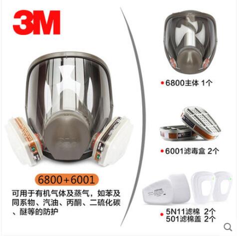 正品3M6800全面罩防毒面具防喷漆工业粉尘化工气体防异味全面具 6800+6001
