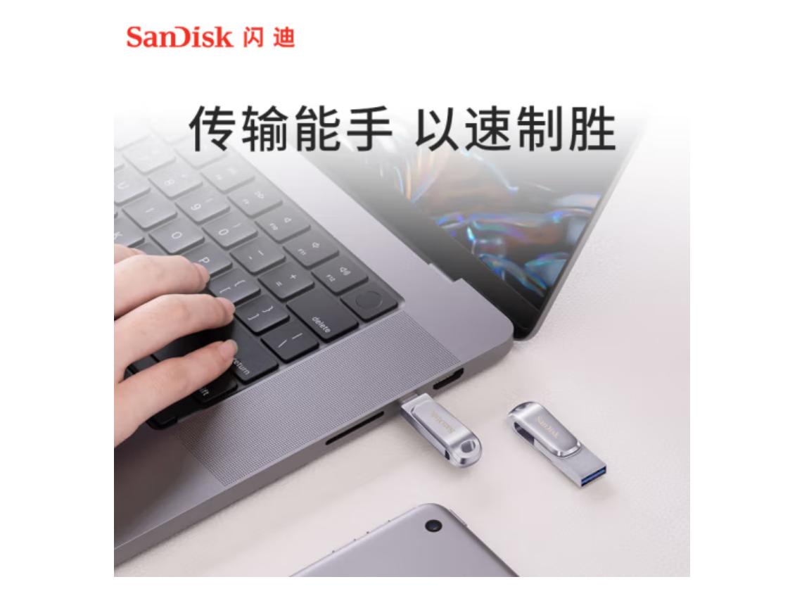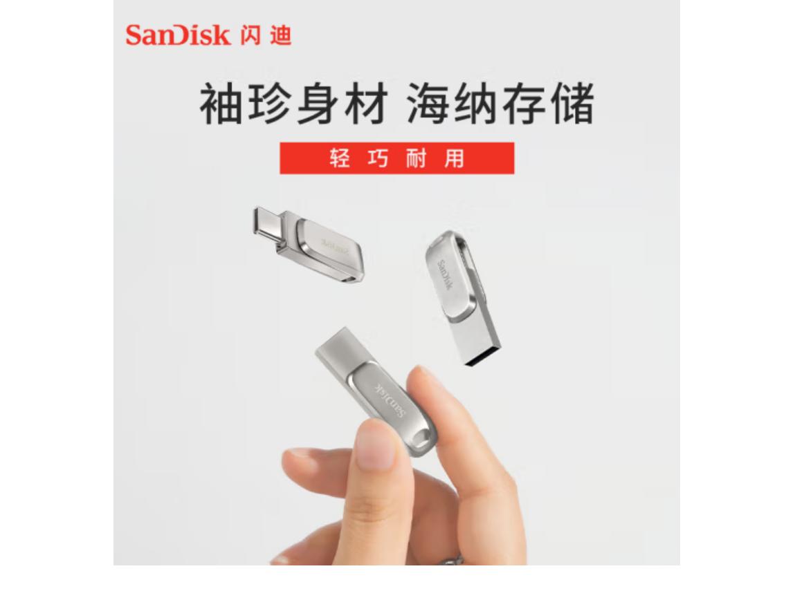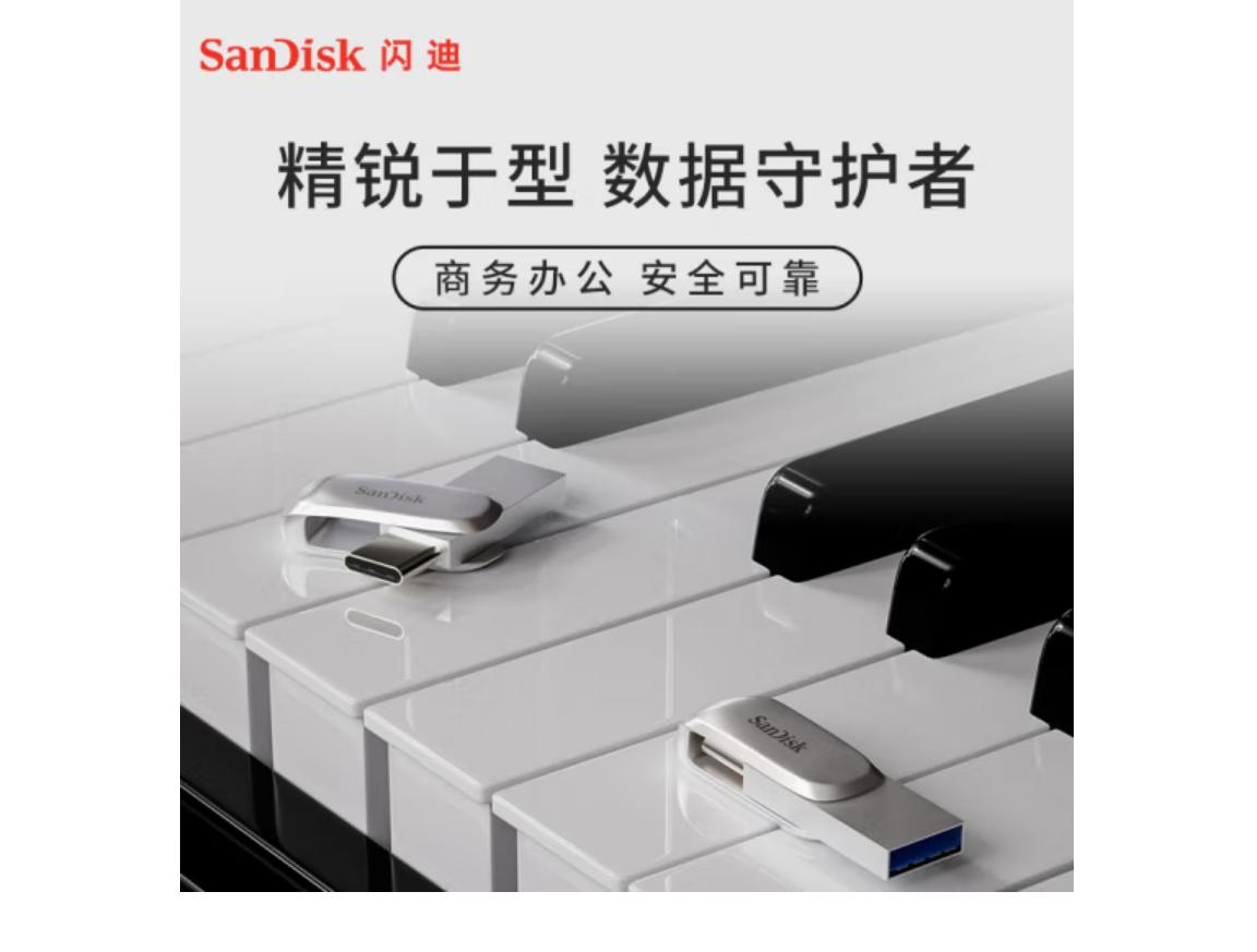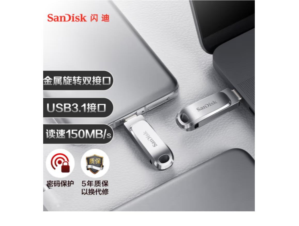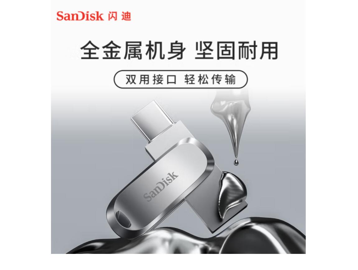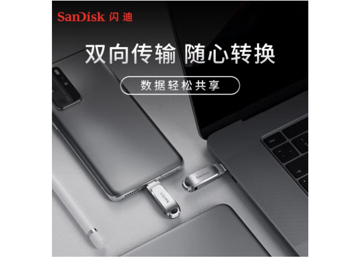 君航科技 闪迪(SanDisk) 128GB Type-c USB 3.2 手机U盘 DDC4 读速400MB/s 安全加密 全金属双接口优盘 手机平板电脑通用