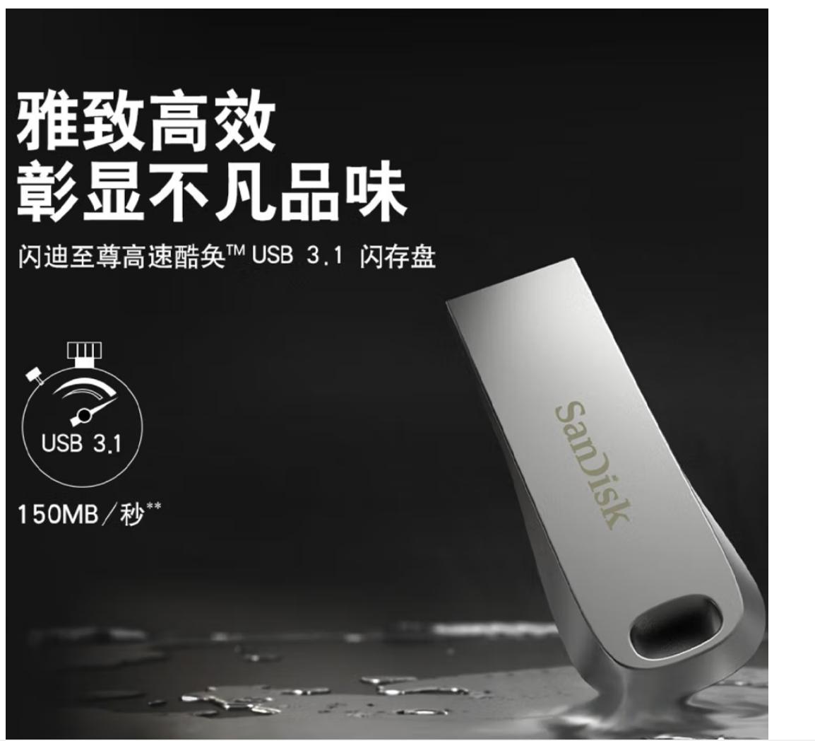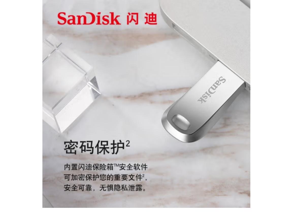君航科技 闪迪(SanDisk) 128GB USB3.2 U盘CZ74 读速400MB/s 全金属高品质u盘 安全加密 学习办公商务优盘大容量